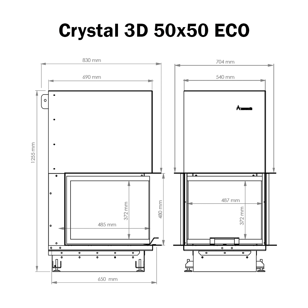 Preuzmite tehnički crtež: Kamin na drva Crystal 3D 50×50 ECO