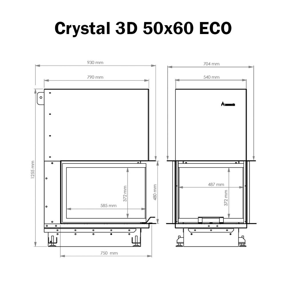 Preuzmite tehnički crtež: Kamin na drva Crystal 3D 50×60 ECO