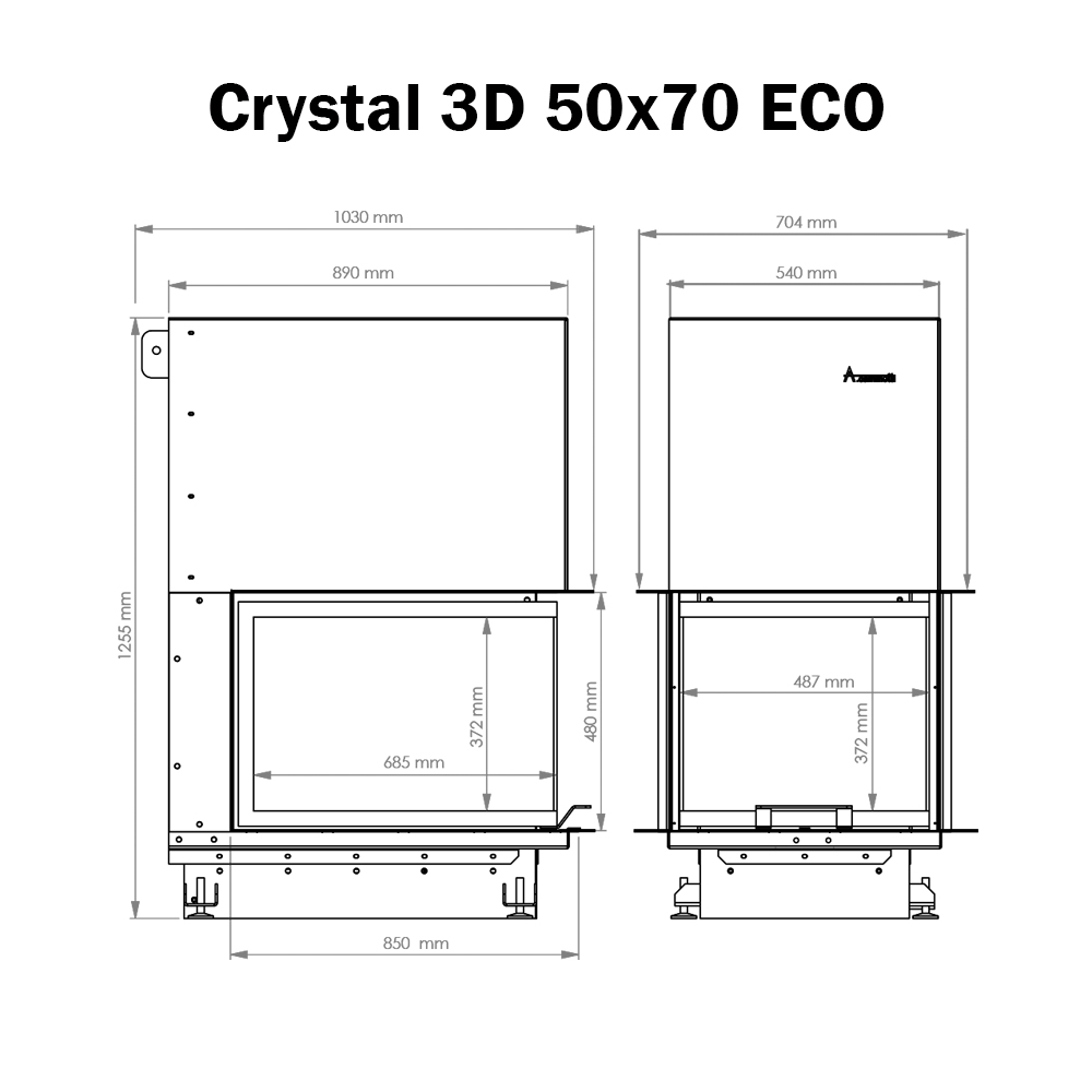 Preuzmite tehnički crtež: Kamin na drva Crystal 3D 50×70 ECO