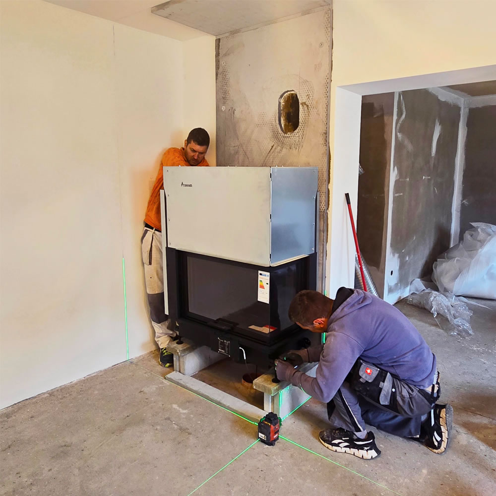 Naša ugradnja se radi sve do molerskih radova koji mogu biti izvršeni po vašoj želji. Kada naši instalateri završe, vi možete vaš kamin obložiti nekom od naših kaminskih obloga ili po želji samo ogletovati i ofarbati, staviti kamen, mermer…